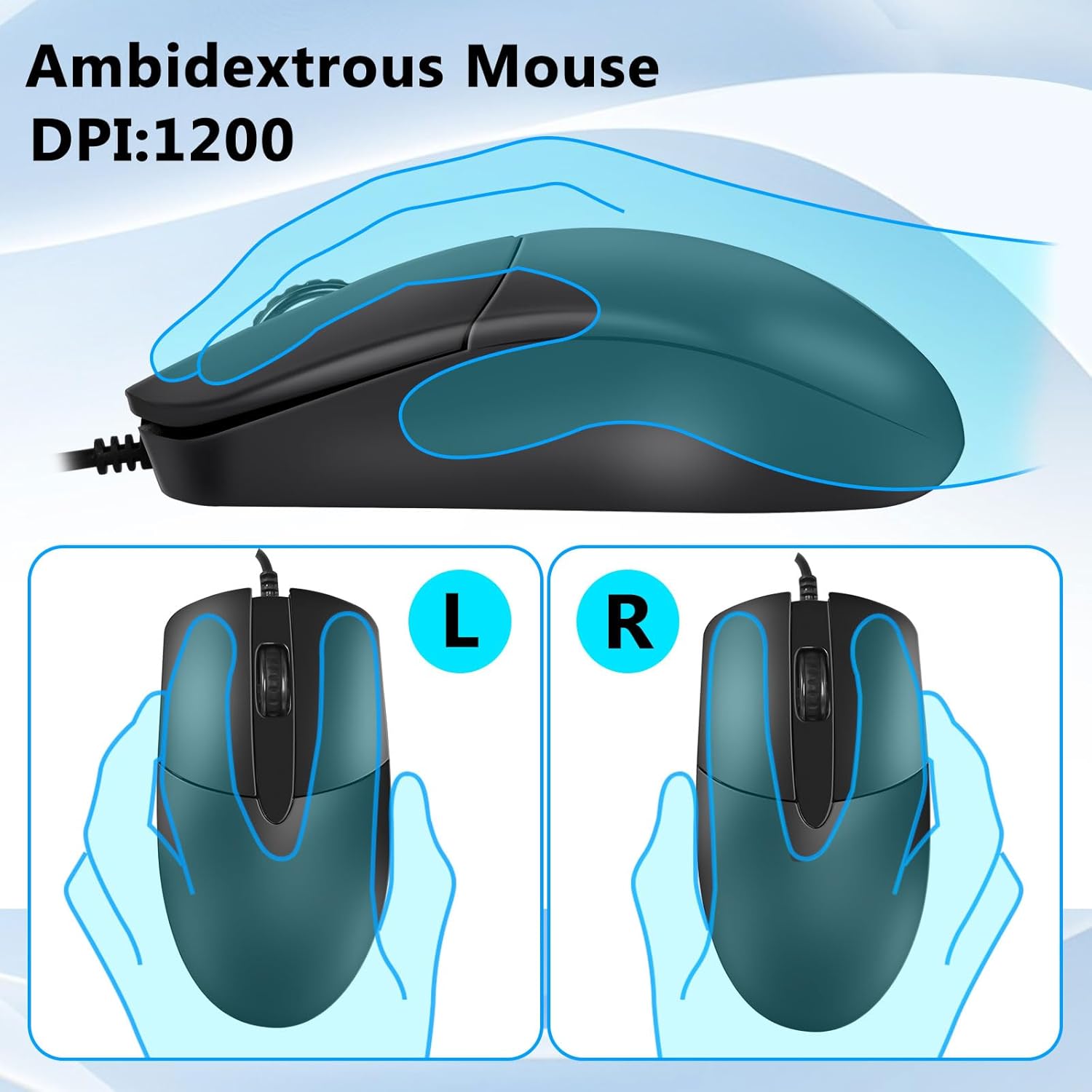Повнорозмірна розкладка клавіатури включає цифрову клавіатуру, мультимедійні клавіші та зручний відстань між клавішами. Миша, що додається, призначена для точного відстеження та плавного переміщення курсору по різних поверхнях.