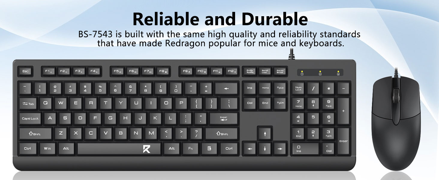 Чорна дротова клавіатура та миша BC7543 підтримує ефективне введення тексту для таких завдань, як редагування документів, програмування, спілкування електронною поштою та управління офісом.