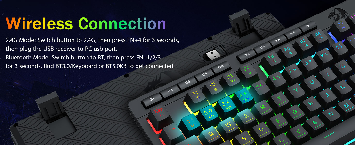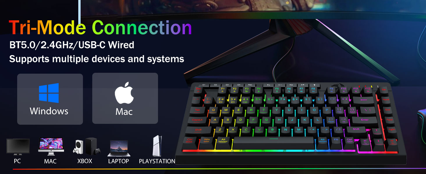 Трирежимна універсальність і багатофункціональність- Легко перемикайтеся між бездротовим режимом Bluetooth 5.0, 2,4 ГГц або дротовим USB-C, підключаючи до 5 пристроїв одночасно (ПК, Mac, планшети, телефони, PS/XBOX).
