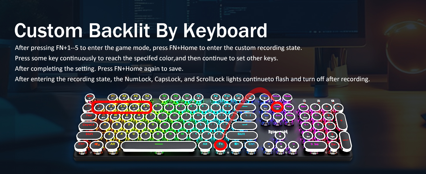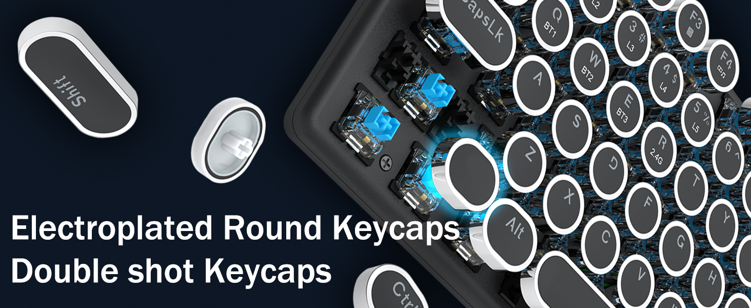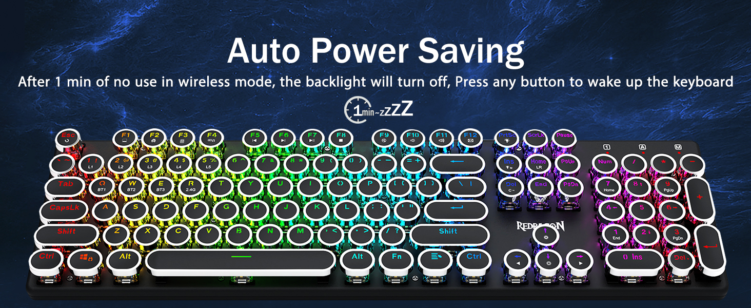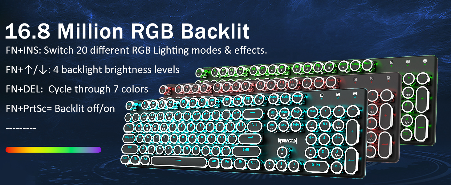 𝗥𝗲𝘁𝗿𝗼 𝗧𝘆𝗽𝗲𝘄𝗿𝗶𝘁𝗲𝗿 𝗦𝘁𝘆𝗹𝗲 𝘄𝗶𝘁𝗵 𝗠𝗲𝗰𝗵𝗮𝗻𝗶𝗰𝗮𝗹 𝗞𝗲𝘆𝘀 -Механічні сині перемикачі Redragon забезпечують середній опір, чутний клацаючий звук і тактильний зворотний зв'язок, забезпечують чутливе та точне ігрове середовище та продуктивність. Вінтажна клавіатура у стилі стімпанк із круглими ковпачками виглядає як класична друкарська машинка, забезпечує комфортне відчуття набору тексту та стабільне клацання.