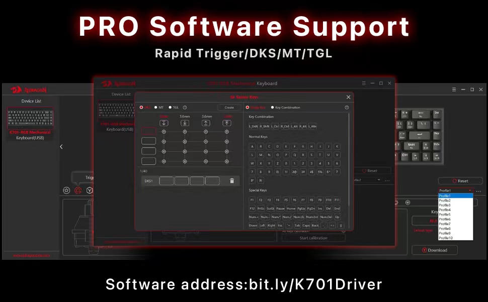 Біло-синьо-чорна механічна ігрова клавіатура K701 Rapid Trigger 60% Wired Magnetic Switch забезпечує швидкий набір тексту, який адаптується до різних уподобань користувачів. Регульовані точки спрацьовування дозволяють користувачам точно налаштувати чутливість відповідно до своїх потреб.