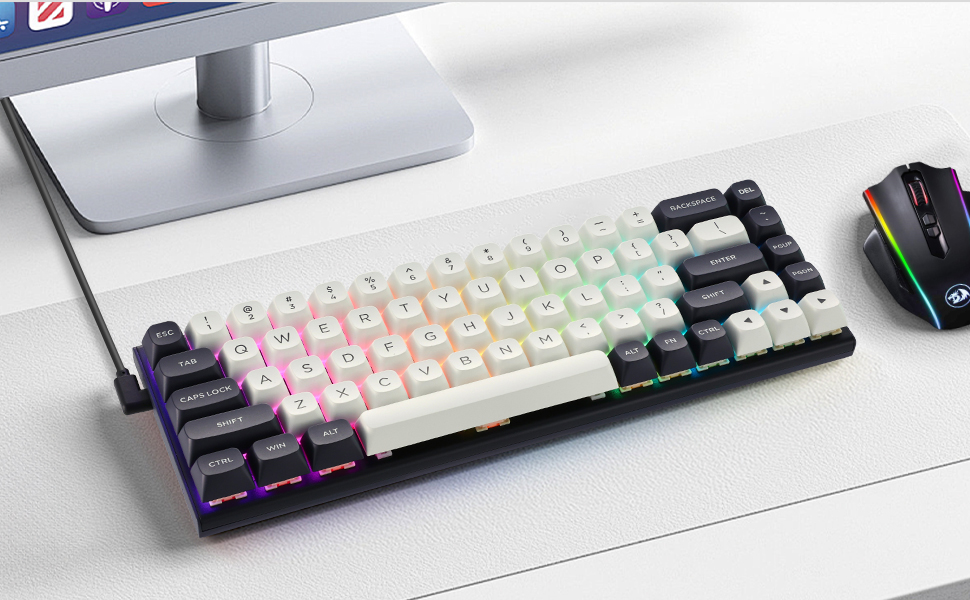 Ця клавіатура зосереджена на швидкому натисканні, рівномірному натисканні клавіш і чистому дизайні, який підходить як для ігор, так і для професійних установок. Його компонування на 60% видаляє непотрібні клавіші, зберігаючи основні функції, дозволяючи користувачам максимізувати простір на робочому столі та підтримувати ефективний контроль під час гри.
