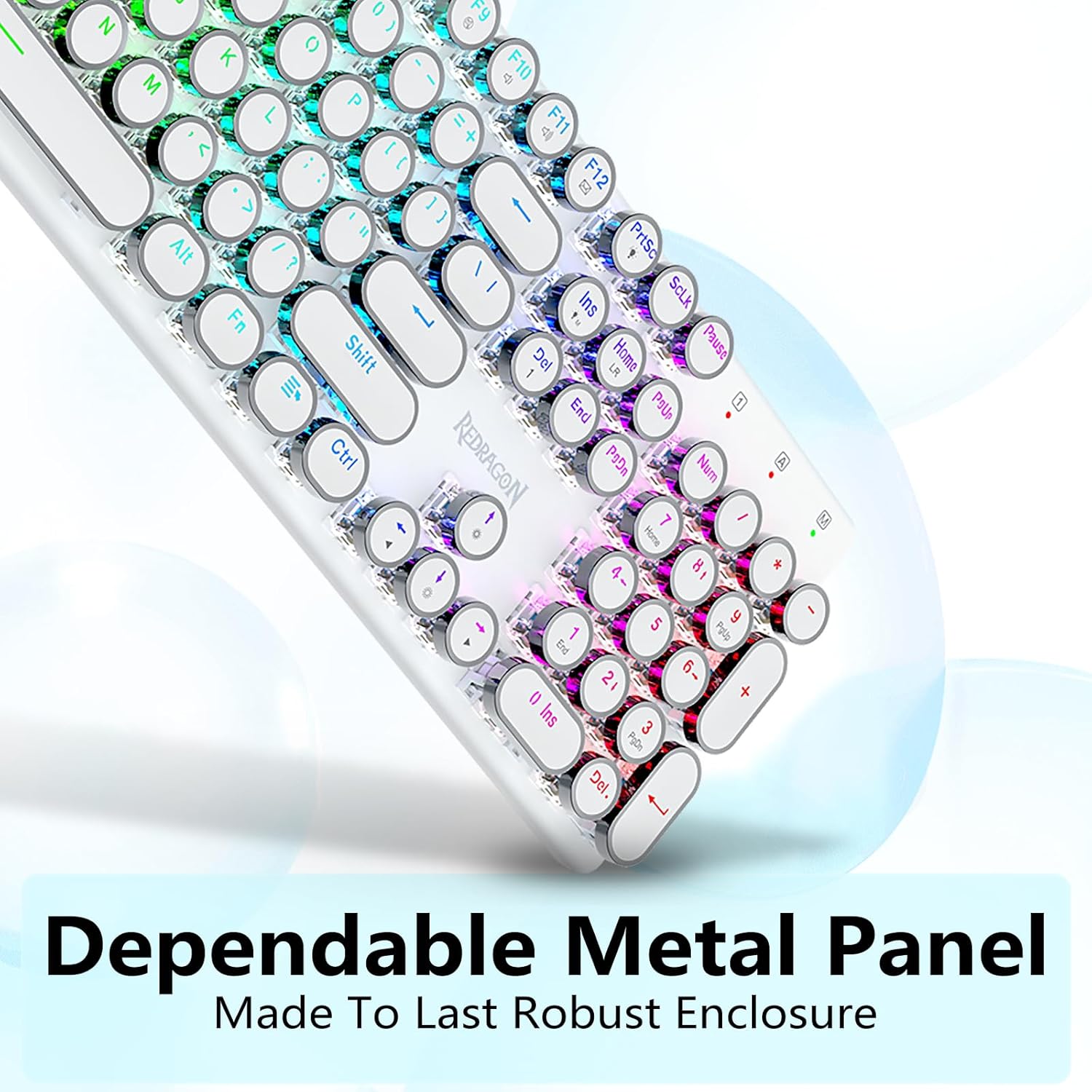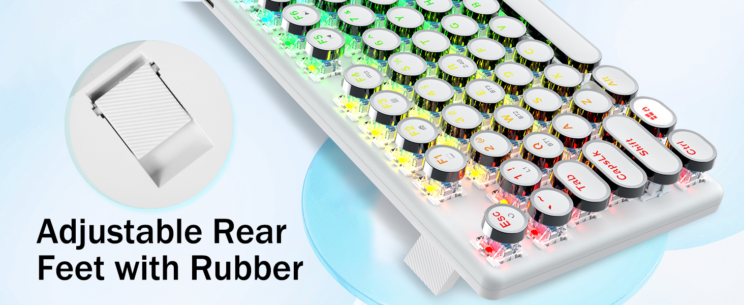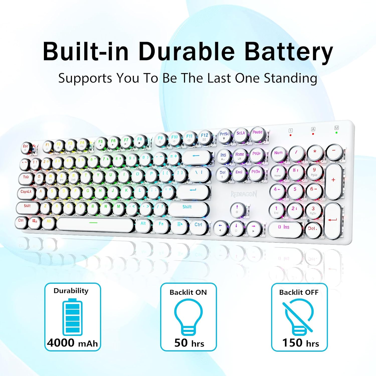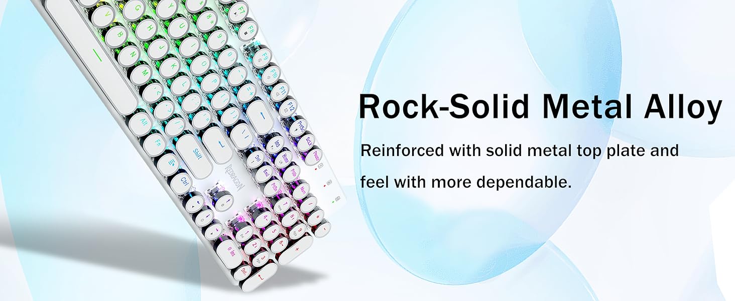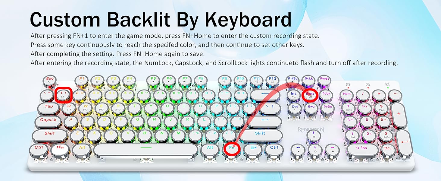 𝗥𝗲𝘁𝗿𝗼 𝗧𝘆𝗽𝗲𝘄𝗿𝗶𝘁𝗲𝗿 𝗦𝘁𝘆𝗹𝗲 𝘄𝗶𝘁𝗵 𝗠𝗲𝗰𝗵𝗮𝗻𝗶𝗰𝗮𝗹 𝗞𝗲𝘆𝘀- Оснащено інноваційною технологією трирежимного з’єднання Redragon, дротовим USB-C, бездротовим режимом Bluetooth 3.0/5.0 і 2.4 ГГц, які підвищують користувацький досвід у всіх сферах. Натисніть FN+Q/W/E для переходу в режим Bluetooth, натисніть FN+R для переходу в режим 2,4G.