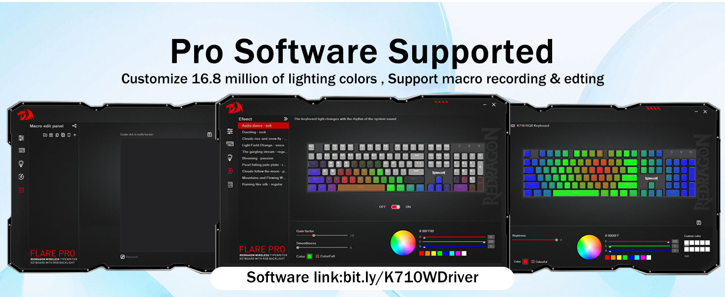 𝗣𝗿𝗼 𝗦𝗼𝗳𝘁𝘄𝗮𝗿𝗲 𝗦𝘂𝗽𝗽𝗼𝗿𝘁𝗲𝗱- Розширюйте свої можливості за допомогою доступного програмного забезпечення для створення власних нових режимів і ефектів. Макроси з різними комбінаціями клавіш або ярликами для більш ефективної роботи та ігор. Посилання на програмне забезпечення: bit.ly/K710WDriver.